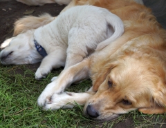Mit uns großen Hunden kommt er prima aus und mit seiner Mama pflegt er eine sehr enge Beziehung – ob sie weiß, dass er ihr Erstgeborener ist?
