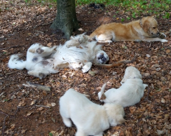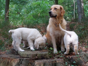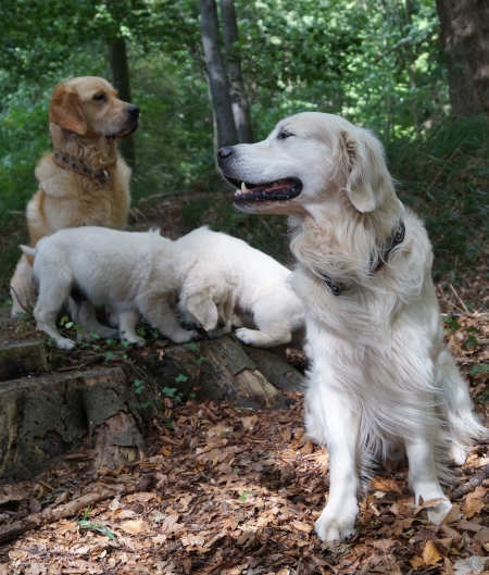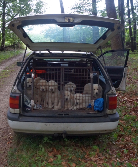Mitte letzter Woche stand ein weiterer Ausflug für die Carlitinchen auf dem Programm: nach kurzer Autofahrt landeten Ginger und ich mit der ganzen Welpenschar im Wald.