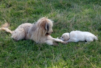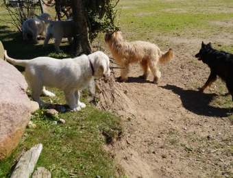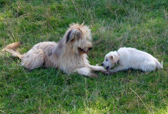 Klein-Murkel ist gleich mutig voran gestürmt und hat sich mit Thorin bekannt gemacht. Erst hat er ihm zärtlich in den Fuss gebissen und dann ganz schnell „Down“ gemacht – nach dem Motto, ich war's nicht!