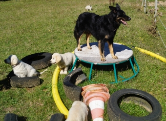 So soll Welpentraining aussehen – bei bester Verpflegung kleinere und größere körperliche Anstrengungen. Die Carlitinchen waren so stolz auf sich!