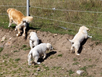 Anschließend zeigte ihnen Jack, was man unter und auf einem Podest anstellen kann und Ginger erklomm mit den Kleinen die steilen Koppelabhänge.