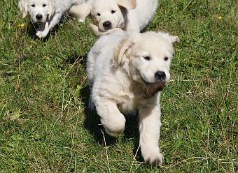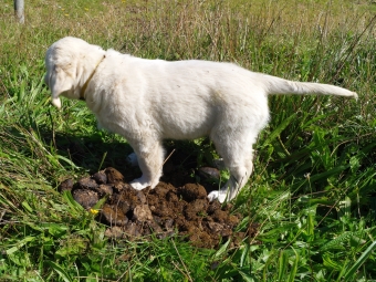 Und mit Pferdeäpfeln kann man ja soviel machen! Man kann sie fressen, man kann sich darin wälzen, man kann sie der Schwester klauen – die Welpen wähnten sich im Schlaraffenland!