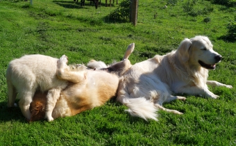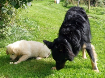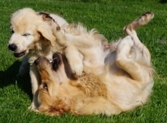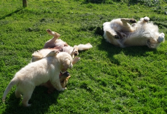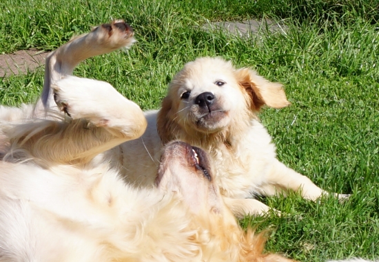 Neulich haben die beiden so lustig miteinander gespielt, dass ich auch ganz lustig wurde und wir uns alle mit- und nebeneinander gewälzt haben.