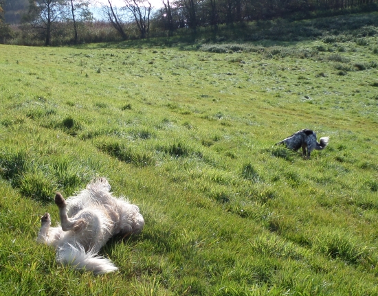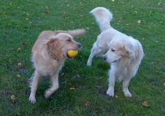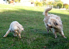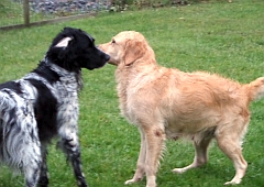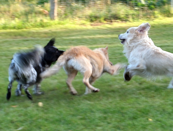 Bei uns in Güsdorf ging es gleichzeitig ebenfalls ordentlich zur Sache. Der gute Hajo hatte alle Pfoten voll zu tun, um sich gegen die Retriever-Gang durchzusetzen.