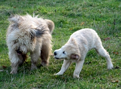 Nur Ginny blieb zu Hause und hat mit der Tochter der Chefin den Hof und die Tiere gehütet. Aber machen wir uns nichts vor, Madame hat sich bei der Welpenaufzucht auch mehr als dezent zurück gehalten.