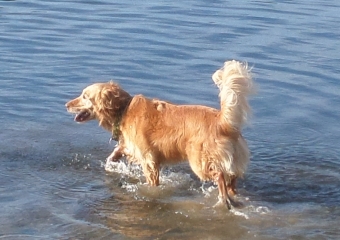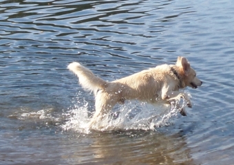 Zu meiner größten Freude sind wir an einem der schönen Sonnentage noch einmal zur Schafswiese gegangen – ratet mal, wer als erster im Wasser war? Aus Herzenslust durchs Wasser hechten, was kann es Schöneres geben?