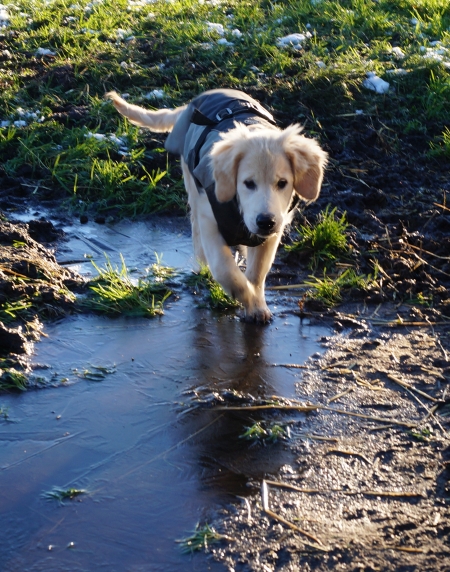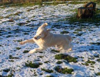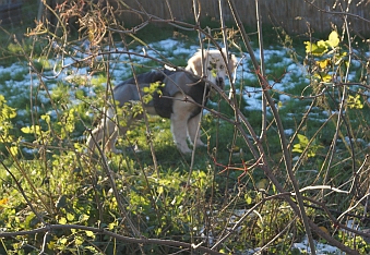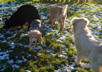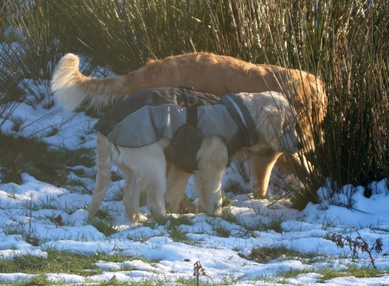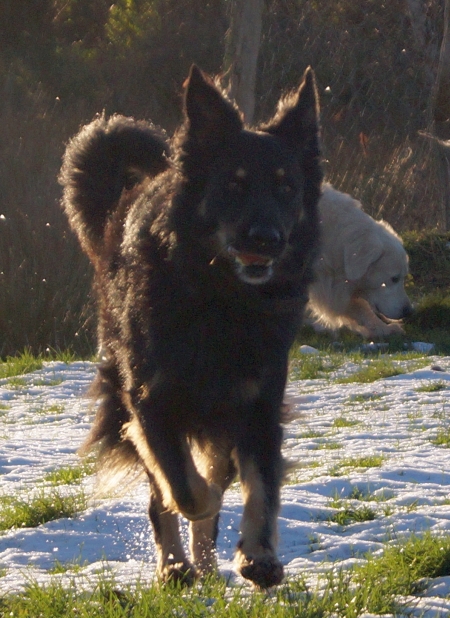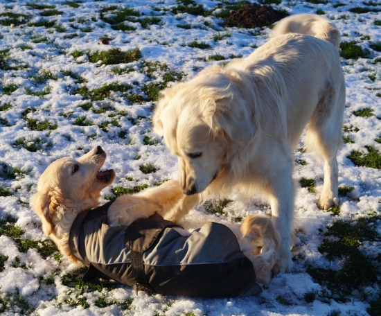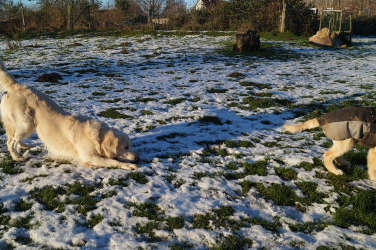 Als erstes lernte Murkel wie man einen Schneeengel herstellt. Er war ganz begeistert und raste um mich herum, machte aber keine Anstalten sich neben mich in den Schnee zu schmeißen.