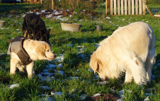 Ginger hat ihr wunderschönes goldenes Fell in die Sonne gehalten und einen ersten Versuch unternommen, den Murkel in die Feinheiten der Mäusejagd einzuführen.