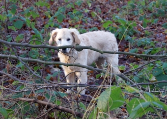 Erst als die Chefin ihn rief und lockte, erkannte der Murkel uns wieder und raste im Schweinsgalopp auf uns zu, nur um kurz vor dem Ziel in einem Gesträuch hängen zu bleiben.