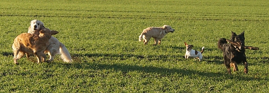 Um uns für die Anstrengungen zu belohnen, durften wir hinterher noch einmal über die Felder rennen. Alles raste, rannte und tobte wild durcheinander, selbst der Murkel mobilisierte ungeahnte Reserven und rannte planlos aber voller Freude um uns herum.