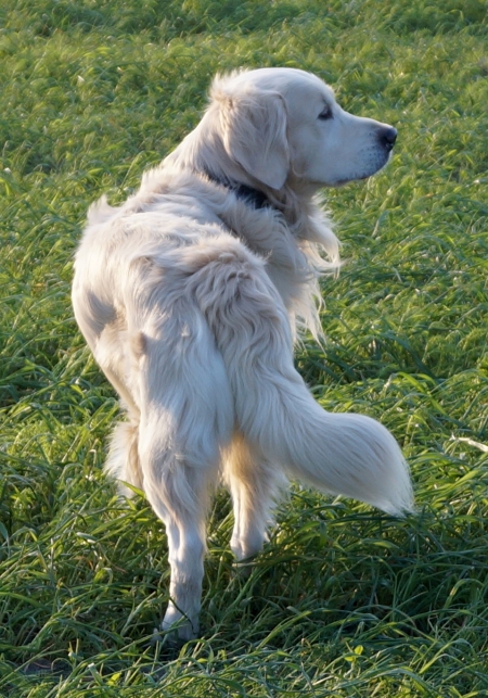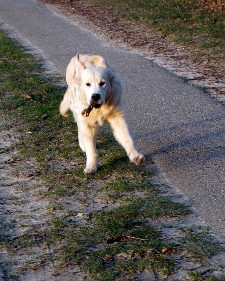 Entsprechend waren wir recht flott unterwegs, bis wir auf einmal merkten, dass uns der verflixte Murkel abhanden gekommen war. Anstatt als kleinstes Rudelmitglied bescheiden den Anschluss zur Gruppe zu halten, hatte er sich mit einem Stöckchen vom Acker gemacht und war schon wieder auf halbem Weg zum Auto.