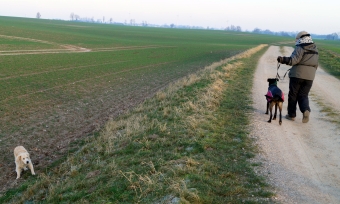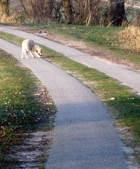 Seit den Weihnachtsferien hat die Chefin den Murkel systematisch trainiert, damit er uns endlich beim Spazierengehen begleiten kann. Am Anfang stand er der neuen Disziplin eher ablehnend gegenüber, aber mittlerweile ist er ganz schön flott davor.