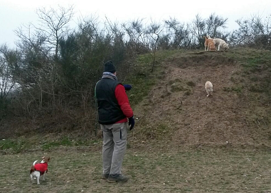 Keiner weiß wie, war er auf einmal nicht mehr auf dem Weg, sondern auf dem Acker und bei dem Versuch wieder zu uns zu kommen, stolperte er in eine vereiste Ackerfurche und stand auf einmal auf dem Kopf!