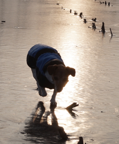 Aber immerhin hat es ein paar Tage lang Frost gegeben und statt in Matsch und Dreck sind wir üer die gefrorenen Felder getobt.