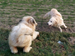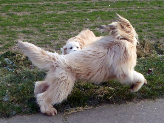 Hinterher hat Murkel sich einen Ringkampf mit seinem Kumpel Thorin geliefert – das tägliche Lauftraining hat ihn in seiner Balance gefestigt und ganz so schnell wie früher geht er nicht mehr zu Boden.