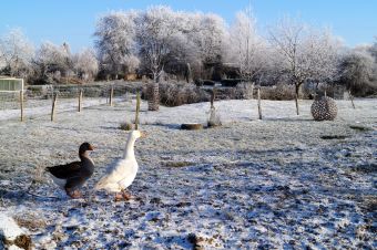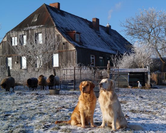Auch die Schafe wanderten ganz entzückt über die gefrorene Wiese und selbst die Gänse, die mit dem Dauerregen der letzten Wochen kein Problem hatten, ließen sich von der Feiertagsstimmung anstecken.