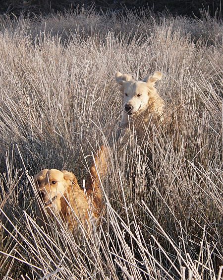 Es machte soviel Spass durch die knackenden, frost starrenden Binsen zu rennen, wir waren völlig high!