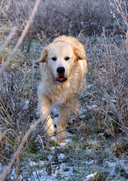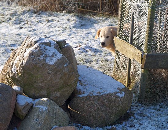 Der Retriever läuft im Frost erst zur Hochform auf und die Chefin, die ja eher von der Frostbeulenfraktion ist, wanderte mit uns über die Schafkoppel, damit wir das Eis ausgiebig genießen konnten.