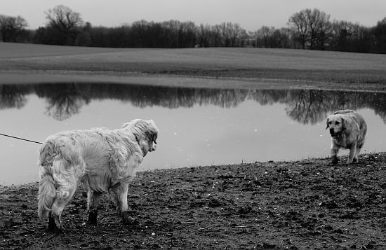 Neulich haben wir aus dem Regen der vergangenen Wochen das Beste gemacht und haben unsere tägliche Runde zu einer der vielen Überschwemmungsflächen gedreht. Eines muss man der Chefin lassen, sie lässt sich vom Wetter nicht unterkriegen und findet immer wieder eine Möglichkeit etwas Spannendes daraus zu machen.