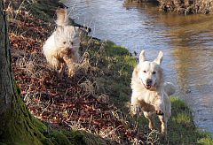 Das Training zahlt sich aus, denn Ginger und Ginny dürfen jetzt eigenlich immer und ich meistens ohne Leine laufen – nur Jack muss im Wald ans Band, denn die Chefin weiß, dass er schneller ist als sie und die Rehe oft vor ihr sieht.