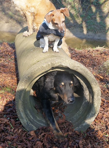 Jack und Ginny waren da eher für die Erprobung einiger Betonröhren, die irgendein freundlicher Waldarbeiter extra für uns im Wald hatte liegen lassen.