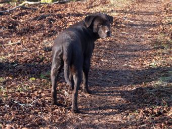 Murkel hat tapfer durch gehalten, aber zum Schluss war er mit seinen Kräften doch ganz schön am Ende – der matschige Waldboden ist so gar nichts für seine krummen Beinchen.