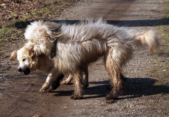 Ich bin natürlich baden gegangen und habe mich anschließend ausgiebigst gewälzt. Irgendeiner muss schließlich das Frühjahr einläuten und was gibt es besseres als ein frisches Bad mit anschließender Haar- und Fellaufbereitung – ich weiß doch, was ich meinem Ruf als Retriever schuldig bin.