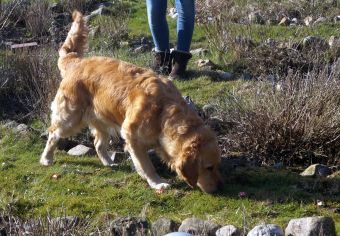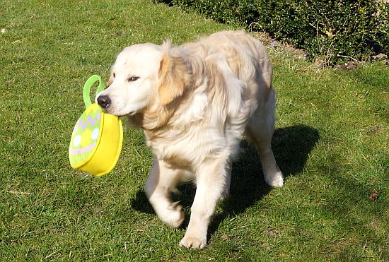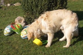 Anschließend sollte Ginger einer Spur niedlicher Schokoladen-Käferchen folgen, um am Ende ein weiteres Osterkörbchen zu finden und dieses zu apportieren.