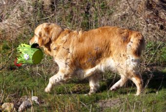 Nach einigen Missverständnissen – Ginger dachte, sie solle die Käfer apportieren, hat es ganz gut geklappt. Madame hat das Körbchen zwar nicht am Henkel getragen, aber das sind schließlich Spitzfindigkeiten.