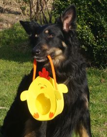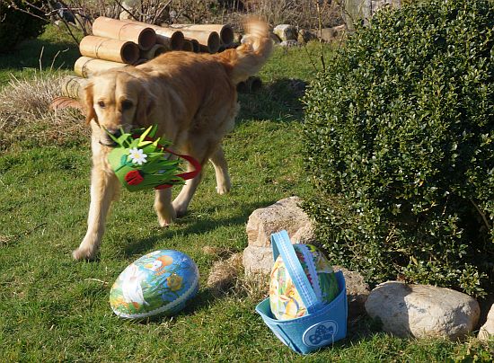 Wir waren wie im Rausch und haben alle Körbchen wieder und wieder gefunden – die Chefin war so stolz auf ihre Apportierbrigade, Sie meinte der Osterhase hätte es auch nicht besser machen können.