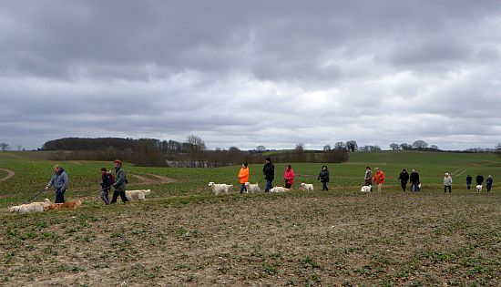 Sogar zwei Hasen sprangen direkt vor uns weg und beim letzten waren wir so nah dran, dass die Chefin mir doch sehr deutlich ansagte, dass ich mich hinzulegen habe, wenn Hasen und anderes Getier davon rennen. Spaßbremse! Was hätte ich für Eindruck schinden können, wenn ich den Hasen vor den Augen aller Junghunde verfolgt hätte, sie wären begeistert gewesen! Aber was soll`s – für diese Welt bin ich einfach zu brav!