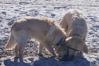 Mit Hilfe von Leckerchen und der moralischen Unterstützung von Ginger, sowie einer hilfreichen Hand am Halsband wurde Murkel ans Ufer bugsiert.
