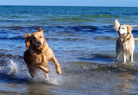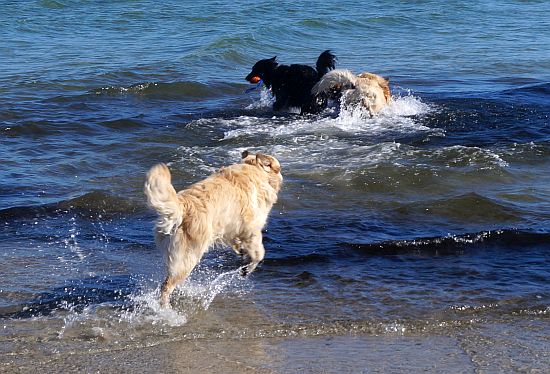 Als Murkel sich wenig beeindruckt zeigte, gab ich meine Erziehungsversuche auf und begann mit Jack und Ginger durchs Wasser zu rennen, so wie wir es immer machen – laut, wild mit viel Gespritze!