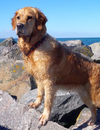 Unser Murkel ist wirklich kein Wasserheld – und damit völlig aus der Retriever-Art geschlagen. Nachdem er bei seinem ersten Badeversuch im Selenter-See gleich koppheister gegangen war, hatte er danach Wasserkontakt gemieden und selbst um Pfützen einen sehr großen Bogen gemacht.