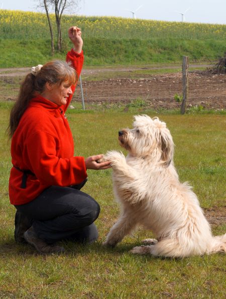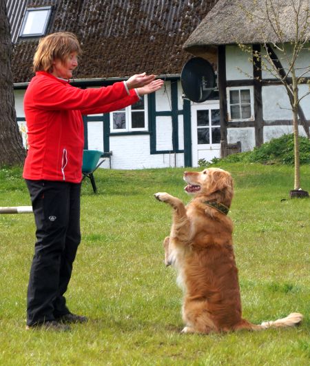 Murkel will jetzt übrigens auch Dogdancer werden, er konnte zwar nicht so richtig erkennen, was wir da gemacht haben, aber er meinte, er möchte unbedingt auch so viele Leckerchen bekommen und ein bißchen um und durch die Beine rennen bekomme er auch hin!
