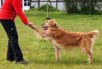 Als erstes waren Paula, Hajo und Manni dran – sie haben mit ihren Chefinnen eine Gruppen-Choreo einstudiert. Ganz schön schwierig, finde ich, denn die drei sind ziemlich verschieden groß und es ist gar nicht so einfach die Tricks synchron hin zu bekommen, wenn der eine Hund für die Übung 10 Schritte und der andere 20 braucht.