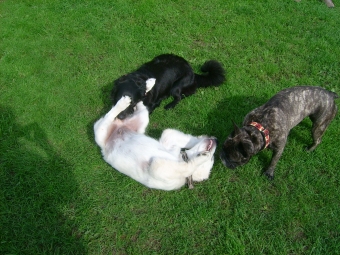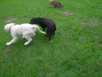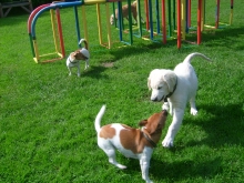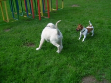 Eigentlich sind alle Hunde hier meine Freunde, besonders der kleine Jack von gegenüber. Am Anfang beisst er mir immer einmal freundschaftlich ins Ohr, damit ich weiß, dass er viel größer und stärker ist, als ich und dann toben wir!