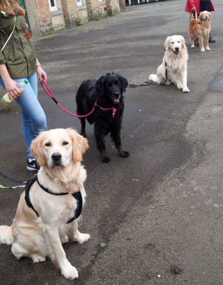 Unsere Truppe am ersten Tag bestand aus lauter guten Bekannten: Katharina und Thorsten mit ihren Border Collies, Gabi und Allegra, Kerstin mit Lilly und Mex, Jörg und Mops Jule und Iris mit Lea.