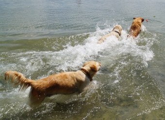 Ginger ist endgültig aus dem Tal der Scheinträchtigkeit wieder aufgetaucht und bringt uns mit ihrer Fröhlichkeit und Wildheit immer wieder zum Lachen. Auf der Party war sie oft als erste am Dummy und hat es stolz ans Ufer getragen.