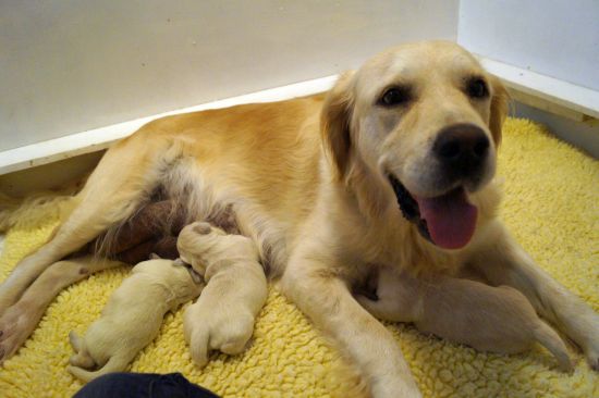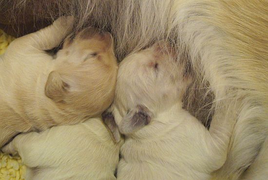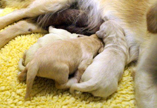 So legt sie sich nicht mehr zu den Welpen, sondern an den Rand der Wurfkiste. Die hungrigen Bärchen riechen die wartende Milch, erwachen und wimmeln und wuseln so schnell es geht zu Muttern um die beste Zitze zu ergattern.