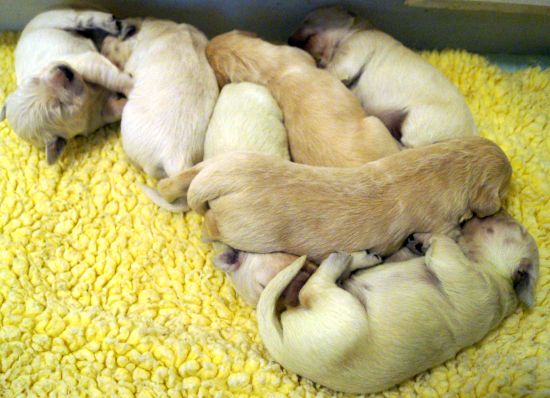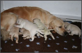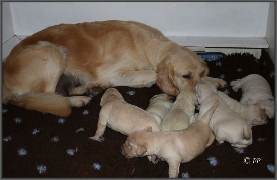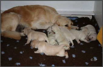 Summer scheint ihren Welpen ihr sonniges Wesen gleich mit der Muttermilch mitzugeben, kaum einmal quakt oder jammert einer von den Lütten, sie sind tiefenentspannt.