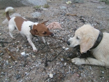 Auf dem Rückweg habe ich dann noch einen echten Fund gemacht. Es roch wunderbar nach Fisch und Aas , ganz unbeschreiblich gut – stolz habe ich allen gezeigt, was ich gefunden hatte! Die Chefin war auch ganz begeistert und rief mit jubelnder Stimme „Bring, Carli, bring!“ Als echter Retriever bin ich mit meinem Schatz gleich zu ihr hin und sie freute sich unglaublich, gab mir eine Handvoll Leckerchen – und dann war der Schatz auf einmal verschwunden.