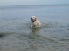 Die Chefin hat dann alle wieder in Stimmung gebracht, in dem sie Leckerchen ins Wasser geworfen hat. Es war gar nicht so einfach, die kleinen Brocken im Wasser zu finden und dann auch noch mit spitzen Zähnen zu greifen. Ich habe eine Tauch- und Schnapp-Variante entwickelt, mit der ich fast immer erfolgreich war.