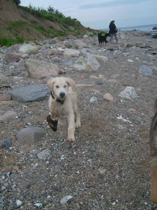 Danach habe ich mit Ginny ein kleines Zerrspiel gemacht, dass sie wie immer für sich entschieden hat und mir dann im Wasser eine Maulvoll Tang ertaucht. Die Ostsee ist cool!