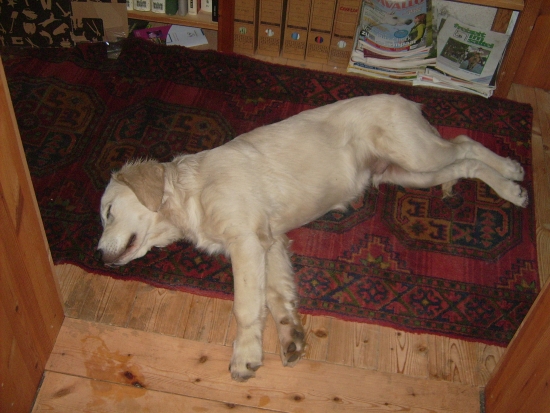 Naja, unsere Revolution war schnell zu Ende, die menschlichen Chefs haben sich auf Sam`s Seite gestellt und kurzer Hand alle Junghunde beiseite gedrängt - „hier wird nicht gemobbt, schon gar keine Welpenonkels!“ Stattdessen gab es eine Fussübung, was mir ehrlich gesagt ganz recht war – zitterten mir, wegen der körperlichen Anstrengung schon schier die Knie. Viel länger hätte ich das wohl nicht ausgehalten. Aber das hat gottseidank keiner gemerkt.