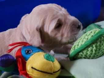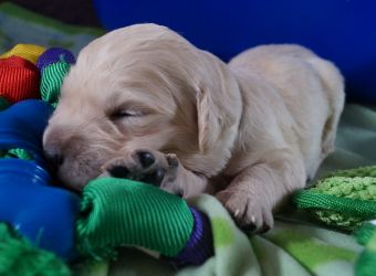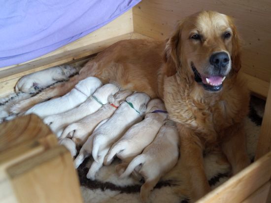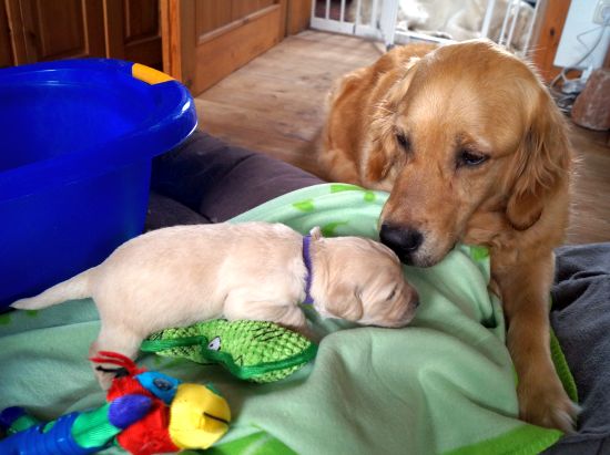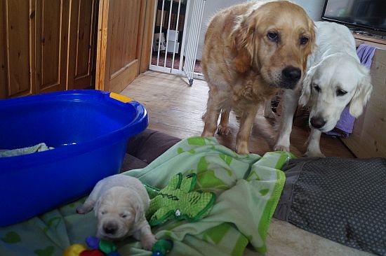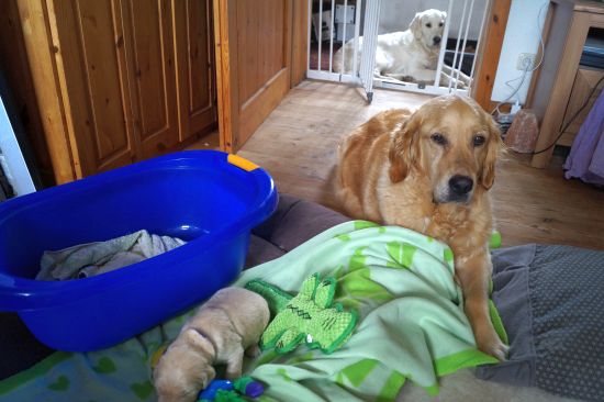 Interessanterweise hatte Ginger mit einem Blick, ohne Knurren oder gar Zähne zeigen, Simba sofort des Zimmers verwiesen – wenn kleine Welpen hilflos außerhalb der Wurfkiste angetroffen werden, haben alle außer der Mutter sofort das Zimmer zu verlassen.