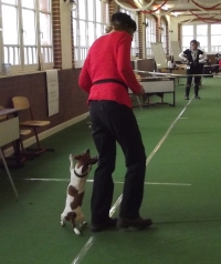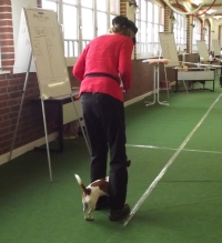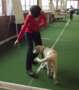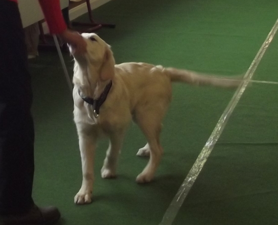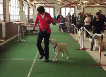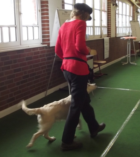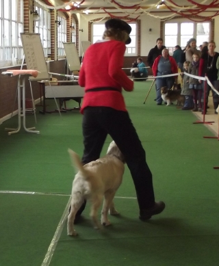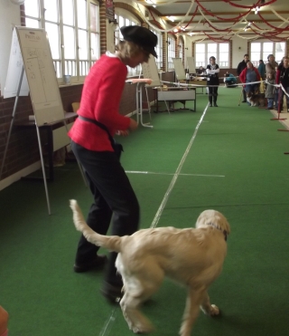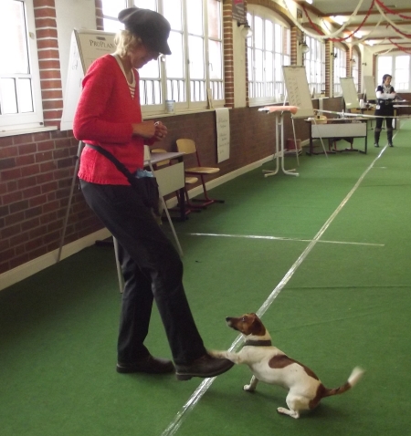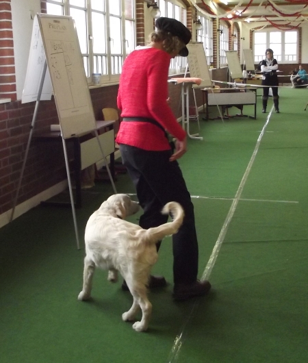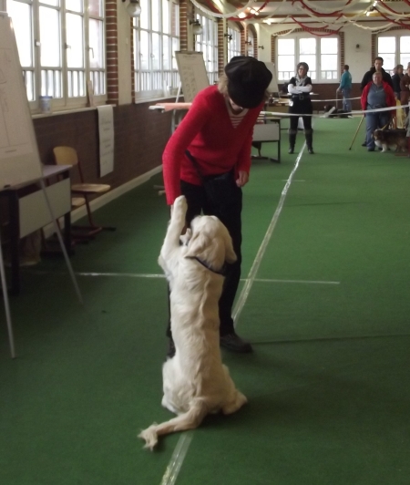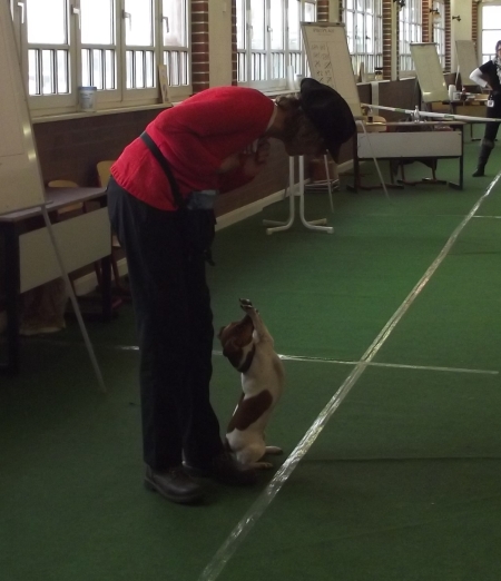 Nachdem die Oberchefin von der ganzen Ausstellung uns vorgestellt hatte, ging es gleich zur Sache: ich sage nur „Click und Wurst“, habe ich als Mini-Welpe kennengelernt und ist immer noch wie elektrisierend. Die Leute, die fremden Hunde, alles egal, die Chefin und ich haben gearbeitet.