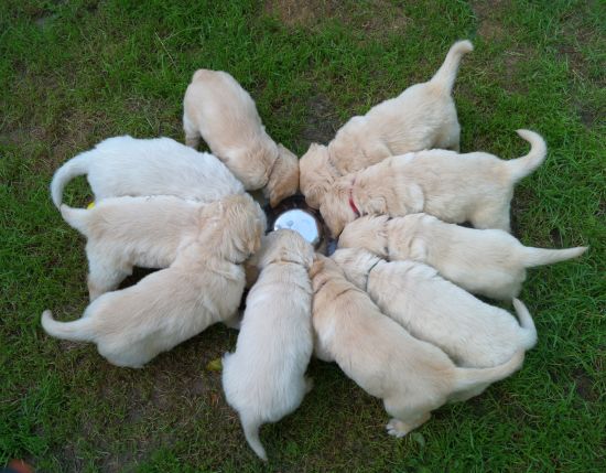 Die morgendliche Milch finden die Welpen spitzenmäßig - ohne zu streiten, nehmen alle den kleinen wärmenden Drink zu sich, um sich hinterher von Muttern wieder sauber putzen zu lassen.