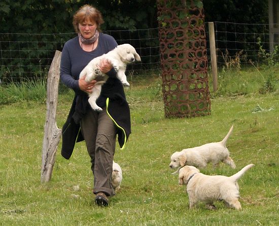 Das Impfen haben dann alle C-linge mit Bravour bestanden, dank der guten Vitaminpaste hat keiner geschrien. Außer ein paar Pfützchen in der Küche und einem etwas hektischen Moment als die Welpen durchs Kindergitter gekrabbelt waren und sich in der ganzen Wohnung verteilt hatten, war alles lässig und unsere liebe Tierärztin Kerstin war ganz angetan von unseren lustigen Kinderchen.