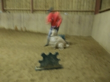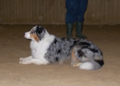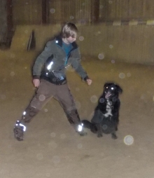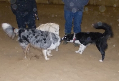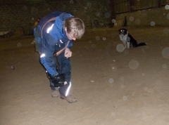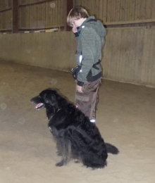 Eigentlich ist abends ja nicht so meine Zeit, da halte ich Wachstums- und Schönheitsschlaf, und dann durch die kurvige Nacht zu fahren, fand ich nicht so erhebend. Aber als wir in der hellen Reithalle in Flüggendorf ankamen, lauter nette Hunde um mich rum waren und überraschenderweise mein guter Freund Hajo auf einmal auf mich zu kam, wurde ich doch schnell wieder wach.